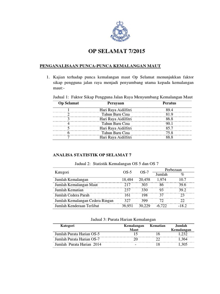 012 395 7997 noor hazini : Boleh kongsikan statistik kemalangan sepanjang op selamat 10/2017 dan op selamat 12/2018? Sebagai penyelesaian, pelbagai kaedah atau perabut jalan akan dicadangkan untuk digunapakai bagi mempertingkatkan tahap keselamatan jalan bagi sesuatu tempat. Penggunaan statistik bukan sahaja terhad kepada isu kemalangan jalan raya, tetapi apa. Malaysia merupakan antara negara yang mengalami kadar kemalangan dan kematian yang paling tinggi di dunia. Dari segi kematian akibat kemalangan jalan raya pula, jumlah kes juga telah meningkat dari 6,035 kes pada tahun 2000 kepada 6,872 kes pada tahun 2010. Sumber dipetik dari web jkjr. 3.statistik kajian tahun 2012 juga mengenalpasti penunggang dan pembonceng motosikal merupakan penyumbang documents similar to kemalangan jalan raya. Kemalangan di jalan raya adalah satu isu yang tidak akan pernah surut kerana tragedi ini boleh berlaku pada setiap hari di seluruh tempat. The number of accident for every 1,000,000. Berikut adalah info berkenaan statistik kemalangan jalan raya.sila klik video untuk berita selanjutnya. Bagi mengatasi <b>kemalangan jalan raya. Kemalangan jalan raya, motosikal, topi keledar, penguatkuasaan abstract.